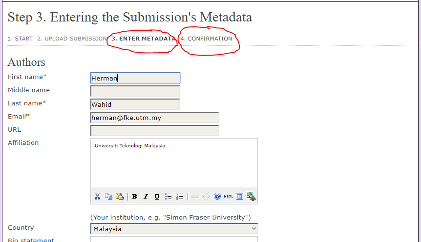 6. Complete the Metadata information and finally the Confirmation step.